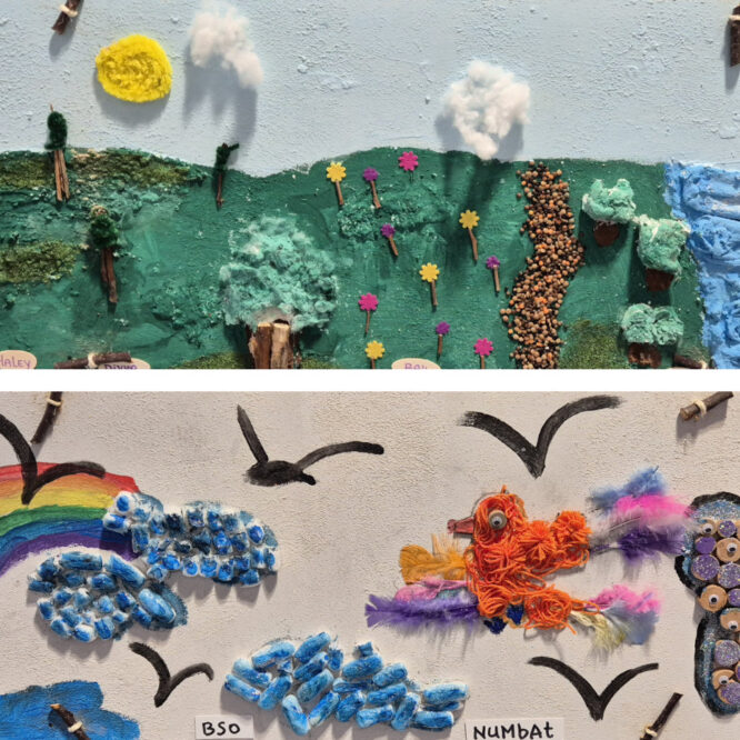 In de Pijnackerse vestiging van bibliotheek Oostland zijn in de maanden maart en april kunstwerken te zien die zijn gemaakt door bezoekers van de buitenschoolse opvang van SkippyPepijn. Kinderen van