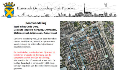Het Historisch Genootschap Oud-Pijnacker heeft een nieuwe rondwandeling samengesteld, die door het oudste gedeelte van Pijnacker gaat, langs allerlei historische plekken. Wie van wandelen houdt, kan met de beschrijving in zijn hand kennis nemen van allerlei bijzonderheden die lang niet allemaal erg bekend zijn.