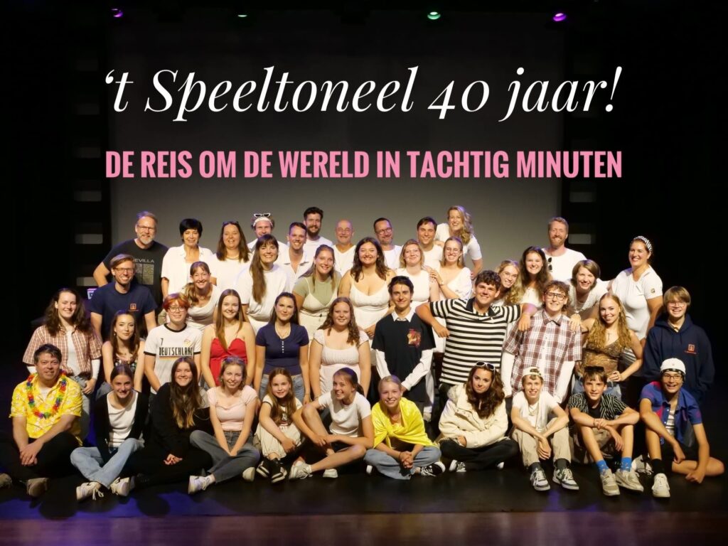 Toneelvereniging ’t Speeltoneel uit Pijnacker viert op 13 en 14 december in Theater CulturA & Zo in Nootdorp zijn 40-jarige bestaan. De vier jongerengroepen spelen elk een voorstelling, die samen De Reis om de Wereld in Tachtig Minuten vormen.